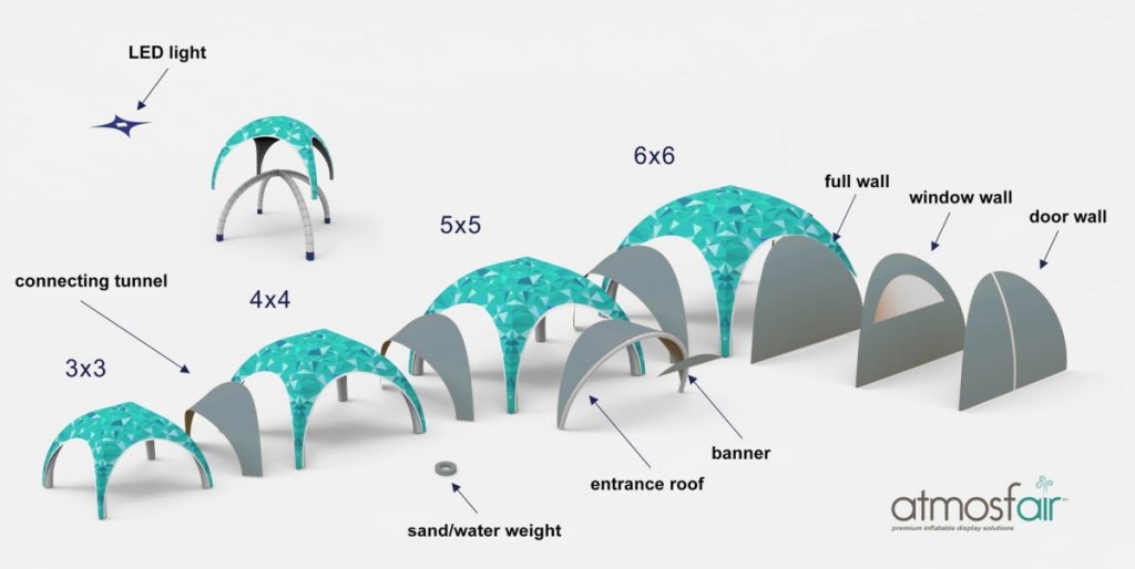 Här kan du välja väggar till artikeln 'Uppblåsbart reklamtält' och modellen Atmosfair® Cross. Finns som helvägg, dörrvägg (dragkedja i mitten) och fönstervägg (med fönster av transparent PVC). Välj vägg enligt storlek på ditt tält, 3x3 till 6x6.
